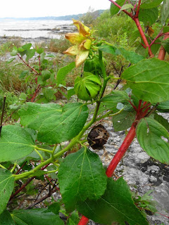 An iconic (and uncommon) wildflower of Lake Erie coastal marsh habitats, Swamp Rose-Mallow (Hibiscus moscheutos). When in flower the large, pink hibiscus flowers are hard to miss.